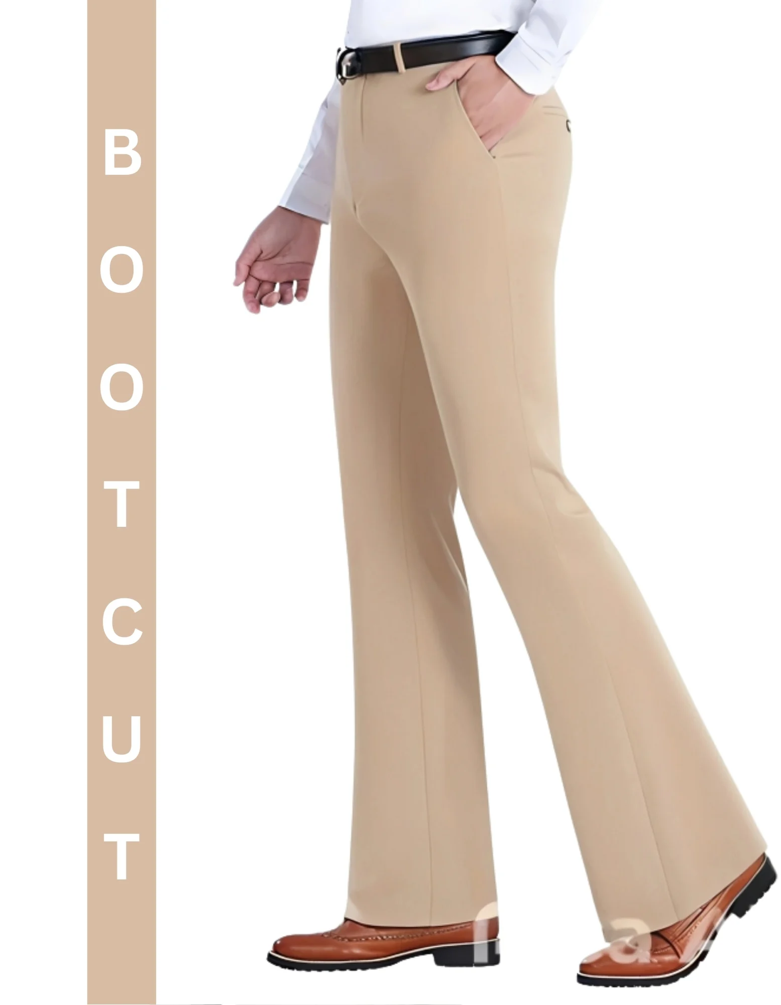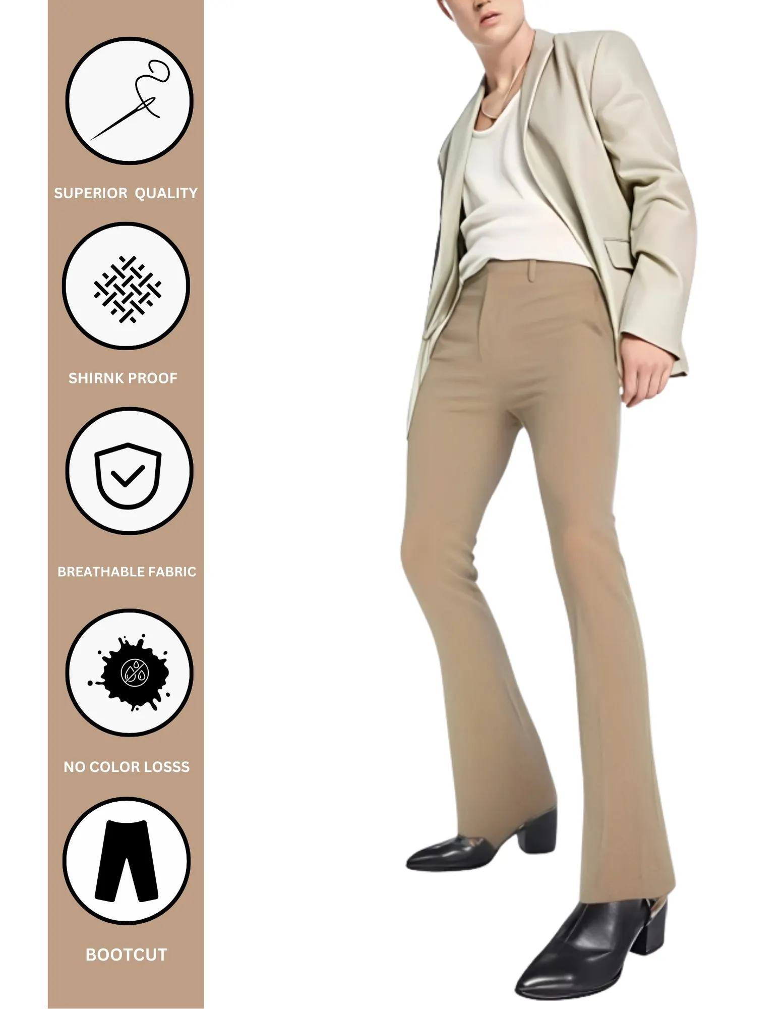 Korean Style Men’s Bootcut Trousers – Camel Bell Bottom Formal Pants