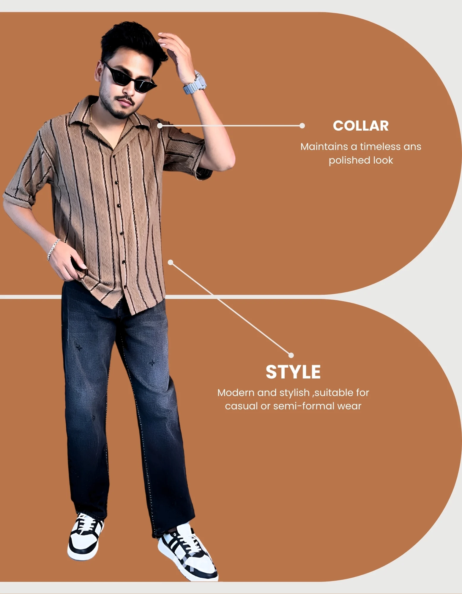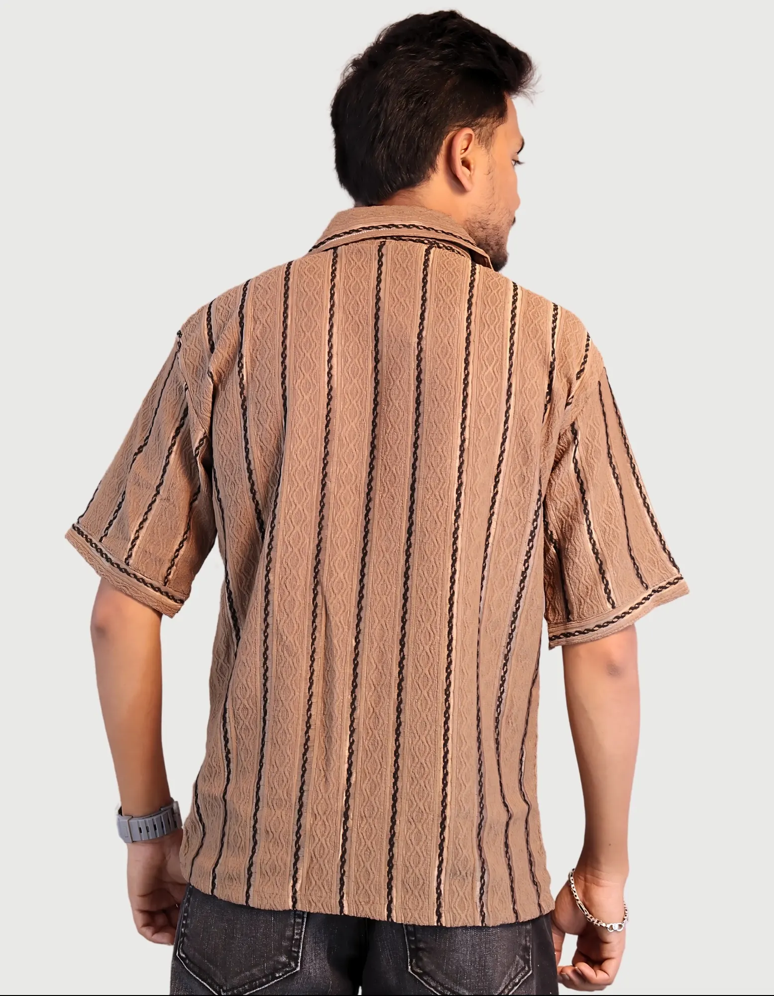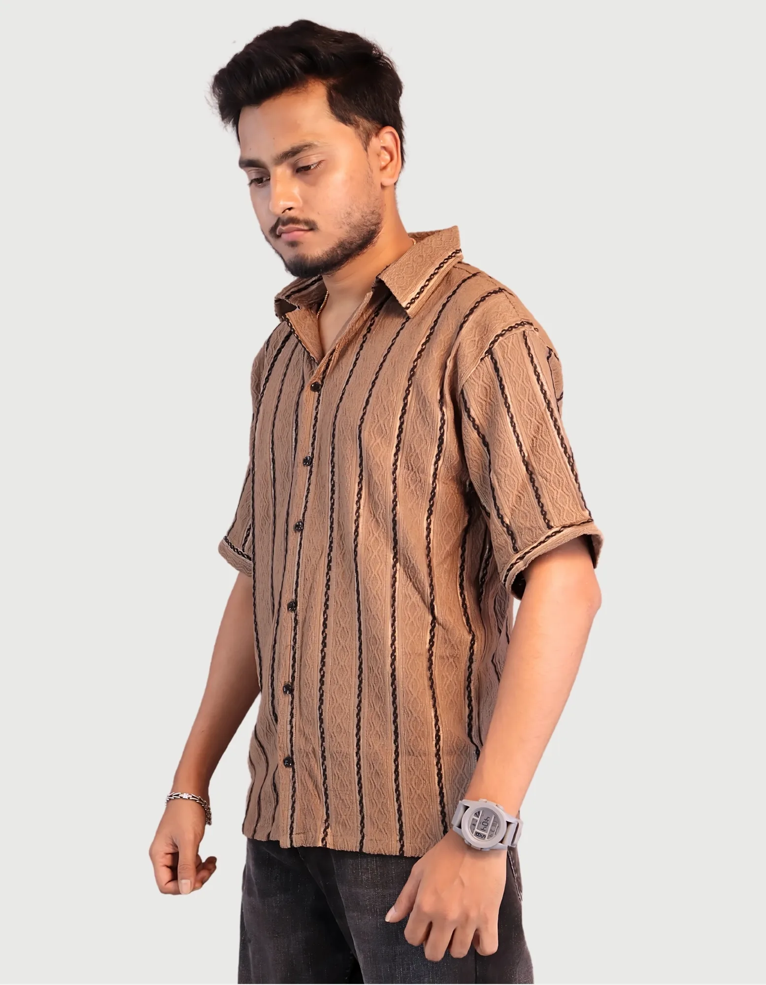 Premium Oversized Drop Shoulder Shirt for Men | Textured Striped Casual Streetwear